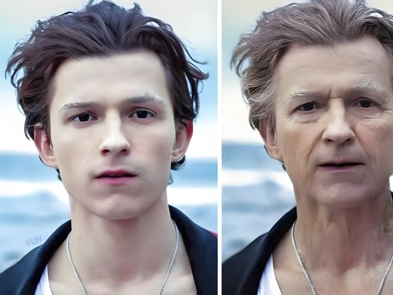 Photo by: Unknown Technology Used: FaceApp In this FaceApp-created portrait, Tom Holland, the 24-year-old English actor, is transformed into an elderly man in his seventies or eighties. The entertaining aging filter provides a preview of what the future might bring for Holland, though his youthful appeal and talent indicate he will remain a significant figure in Hollywood for many years ahead.