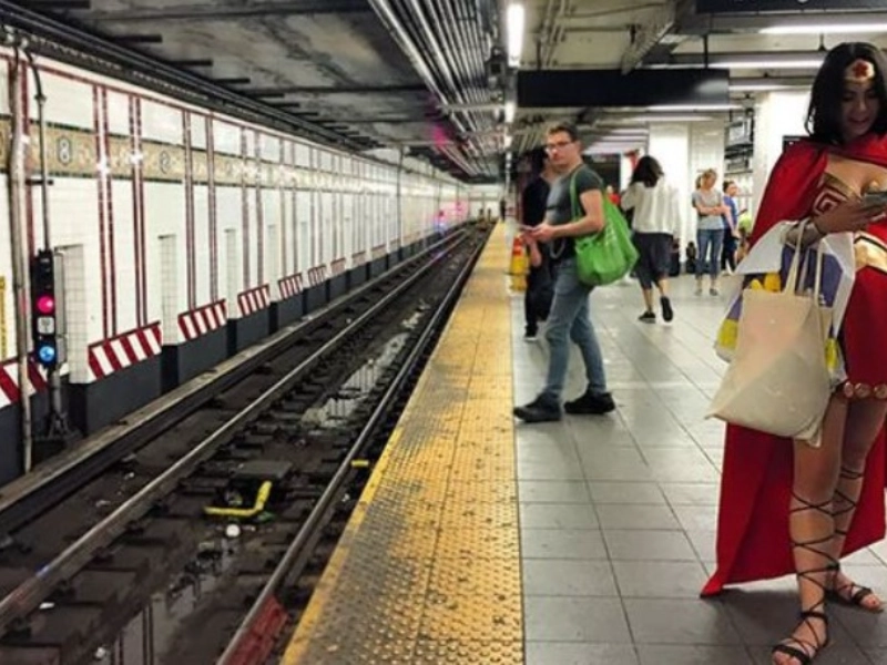 Intricate cosplay details blur the boundary between fantasy and reality. Fellow passengers are transported to a comic convention without ever leaving their daily route.