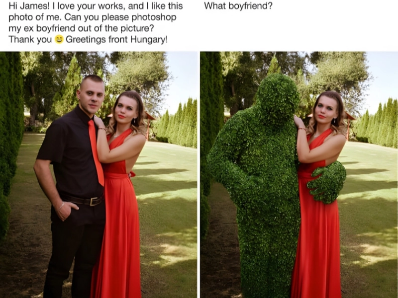 Everybody has had a terrible picture of an ex at one time. If you really like the picture, it's much worse; but, the fact that your ex is present utterly ruins it. This girl inquired whether it would be possible to photoshop her ex out of the picture—which wouldn't be really simple. Her whole posture depends on someone or something supporting her hands and arms.