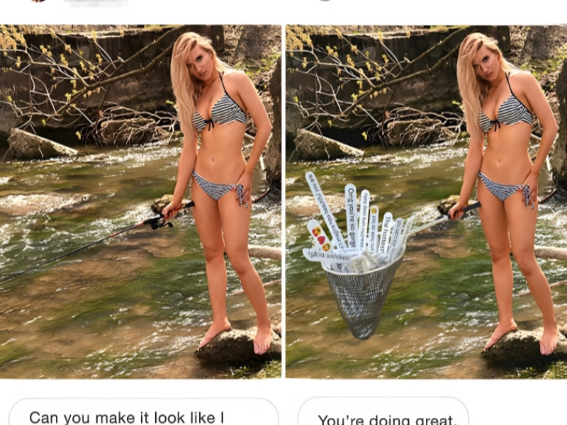 You can most likely relate to a picture on social media of someone hiking or engaging in another outdoor activity if they are totally dressed inappropriate for the situation. Still, this girl understood what she was getting into when she requested a picture of her holding a fishing pole to be edited. "Can you make it look like I truly know how to fish?" she asked.