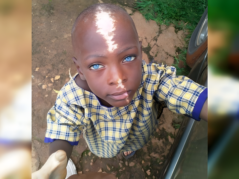 Waardenburg syndrome lights his eyes with electric brightness and dusts his hair with white. He embodies the stunning extremes that can arise from a single genetic shift.