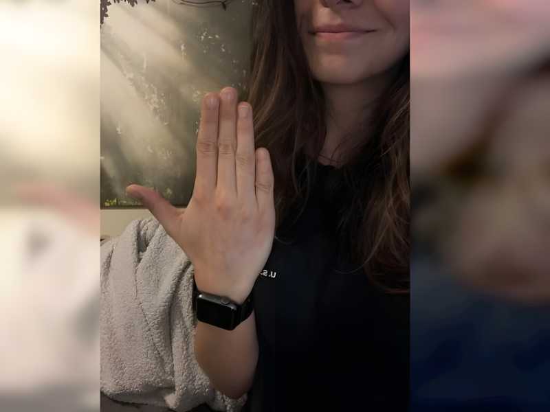 A shortened pinky bends the silhouette of the hand, carving individuality into every handshake and wave.