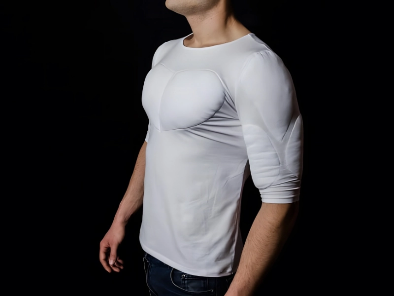What it is: A white t-shirt with built-in muscle padding Invented: 2016 Average Price: $179 The Danrich Muscle Shirt creates the appearance of muscular build through six padded sections. Constructed from polyester and polyurethane, it remains surprisingly breathable and comfortable.