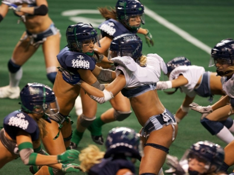 Lingerie football combines American football intensity with entertaining twists. Female athletes compete in lingerie or bikinis, showcasing athletic skills while following traditional football rules. This sport blends competitive spirit with entertainment, drawing fans appreciating both athleticism and spectacle.