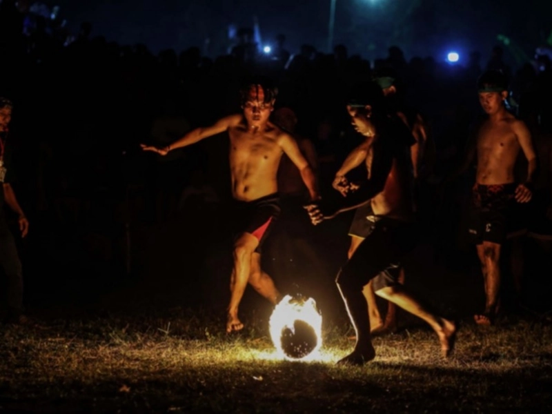 Fireball, known as Sepak Bola Api, creates a blazing spectacle from Indonesia. Performed during Ramadan, this activity transcends sport—it represents cultural heritage. The "ball" consists of dried coconut stuffed with combustible materials and ignited. Eleven-player teams attempt rolling the flaming sphere into opponents' goals. Dribbling becomes rare due to obvious burn risks, and heading the ball threatens hair loss. Despite inherent dangers, this game showcases remarkable courage and expertise.