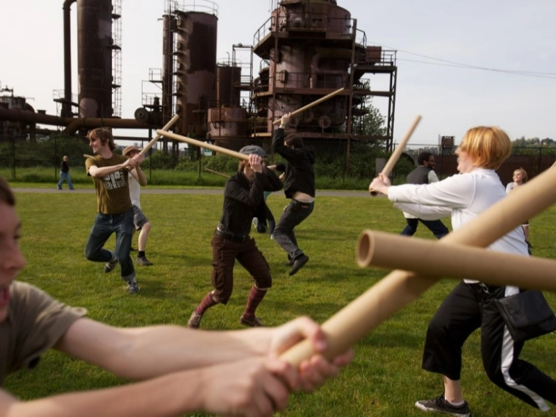 Cardboard tube battles feature quirky entertaining contests where participants balance on cardboard tubes attempting knocking opponents off. Armed with cardboard tube staffs or cannons, competitors use coordination, agility, and strategy outlasting rivals. These playful battles emphasize fun equally with skill, creating lively engaging atmospheres for participants and spectators.