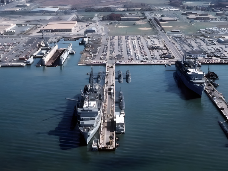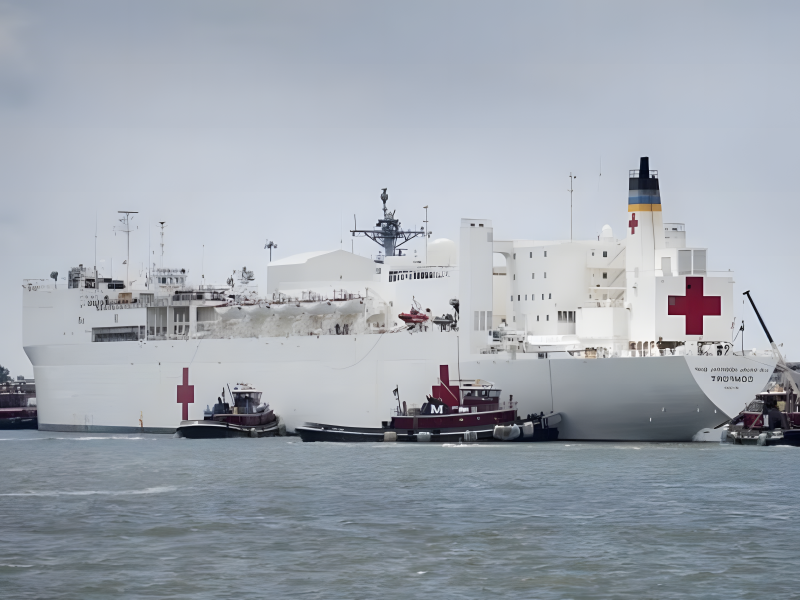 Among Norfolk Naval Base's distinctive assets stands its floating medical center, visible in this photograph. This healthcare facility possesses the capacity to treat up to 4,000 casualties during warfare or crisis situations, representing an indispensable resource for naval operations.