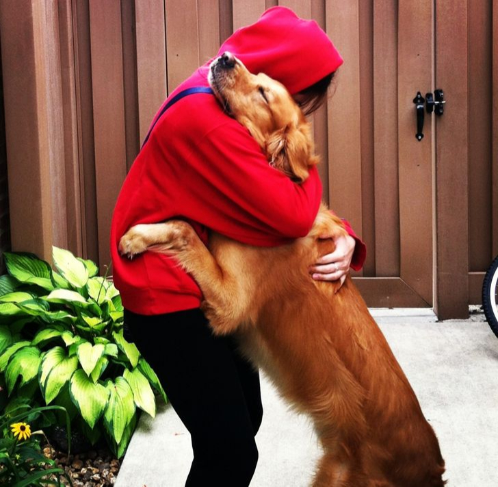A dog’s embrace melts stress and fills hearts with joy, showing how deeply our canine pals connect with us.